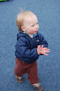 Kieran is an expert collector. He knew exactly what to do and got down to work putting everything he could find into his bag. Soon it will be pockets filled with rocks and other treasures he finds in his path. I must be better about checking pockets before sending pants through the laundry! Notice his new "big boy" shoes. He's very proud of his first pair of real shoes and will sit and hold up his feet at any mention of putting them on.